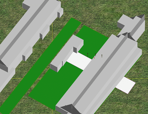 Een praktisch alternatief is een berekening. Bij de meeste installaties is leveranciersinformatie beschikbaar waarin ook het geluidbronvermogen wordt aangegeven. Hiervan uitgaande kan met een overdrachtsmodel het geluid in de omgeving worden berekend. De ODA kan dergelijke berekeningen uitvoeren. In de afbeelding hieronder een rekenmodel van een warmtepomp in een woonwijk.